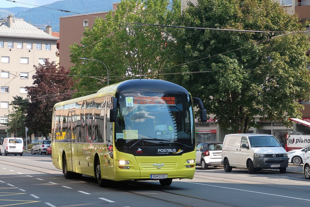 MAN Lion's Regio von Postbus BD-12767 als Schienenersatzverkehr für die Brennerbahn in Innsbruck, Amraser Straße. Aufgenommen 17.8.2018.