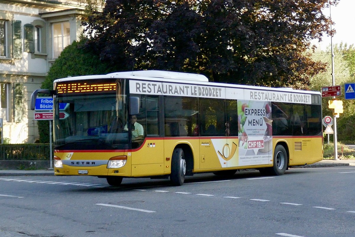 Setra 415 NF von Düdingen trifft am 15.9.18 gleich in Laupen ein.