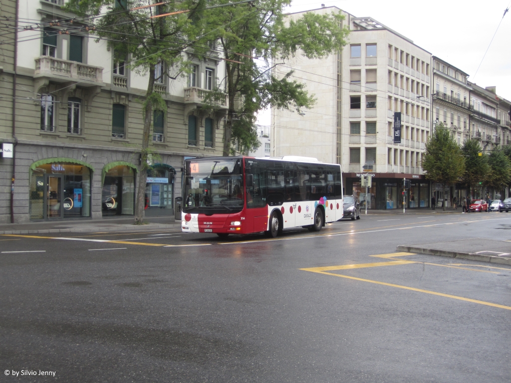 tpf Nr. 354 (MAN A76 Lion's Midi) am 28.7.2018 beim Bhf. Fribourg