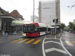Hess Trolleybus 23, auf der Linie 20, bedient die Haltestelle beim Bahnhof Bern. Die Aufnahme stammt vom 09.07.2018.