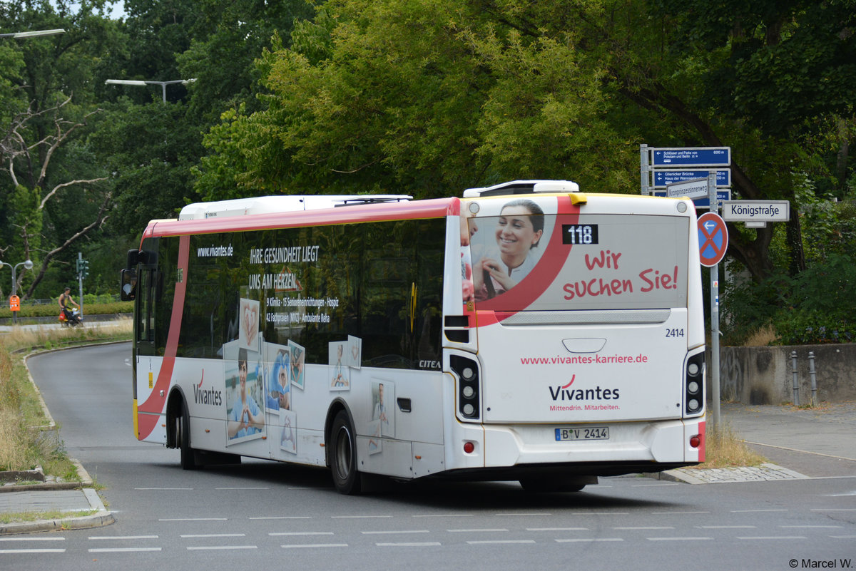 Am 05.08.2018 fuhr B-V 2414 auf der Linie 118. Aufgenommen wurde ein VDl Citea / Berlin Wannsee.