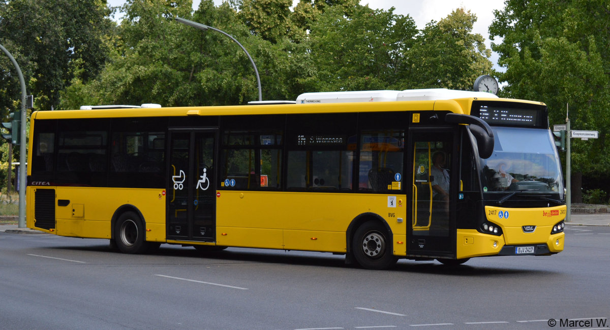 B-V 2417 fuhr am 05.08.2018 auf der Linie 114. Aufgenommen wurde ein VDL Citea / Berlin Wannsee.