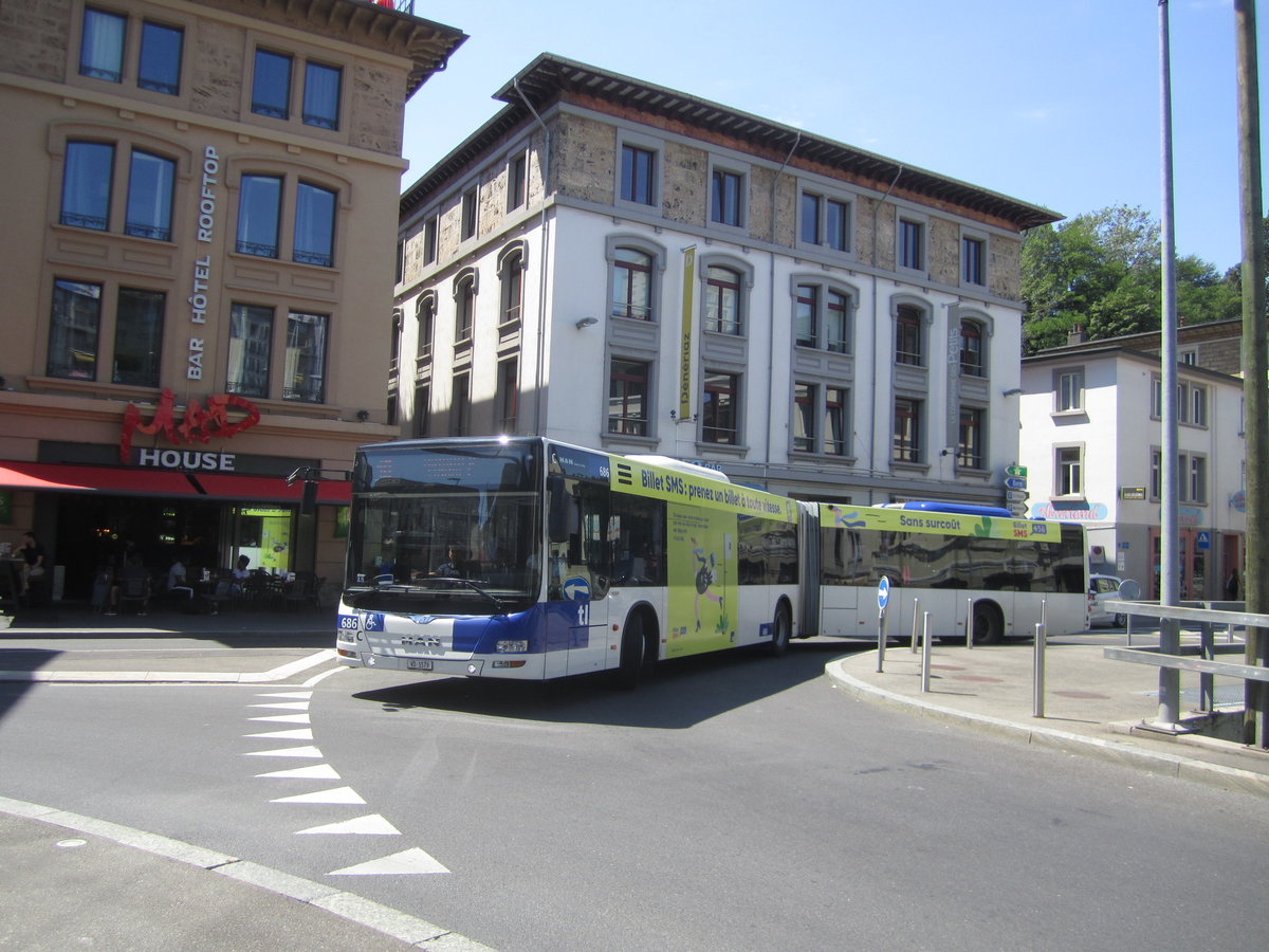 tl Nr. 686 (MAN A40 Lion's City GL) am 30.7.2019 in Lausanne-Flon