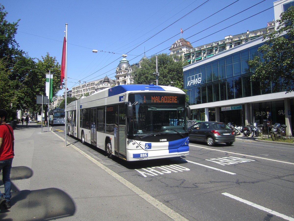 tl Nr. 886 (Hess Swisstrolley 4 BGT-N2D) am 30.7.2019 zwichen den Haltestellen St-François und Georgette
