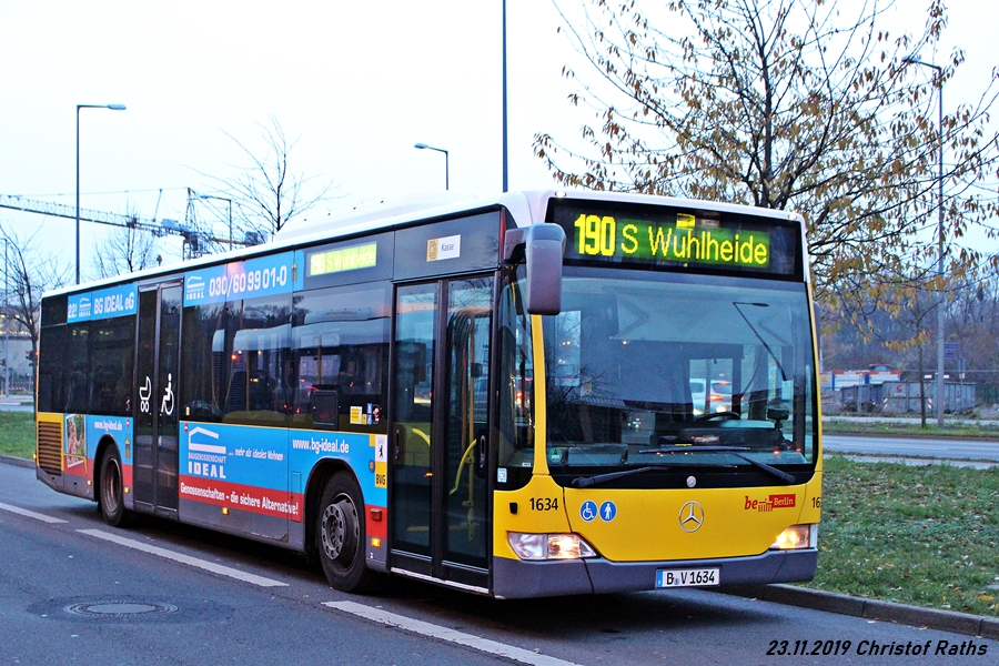 BVG Wagen 1634 auf Linie 190 nach S Wuhlheide - Berlin, Köpenicker Straße / U Elsterwerder Platz - am 23.11.2019 - Werbung: Wohnungsbaugenossenschaften/Baugenossenschaft Ideal