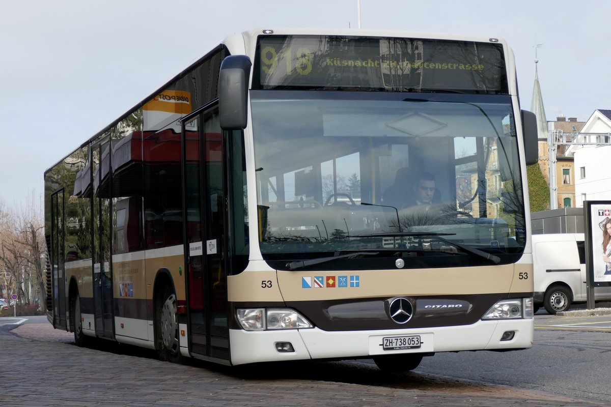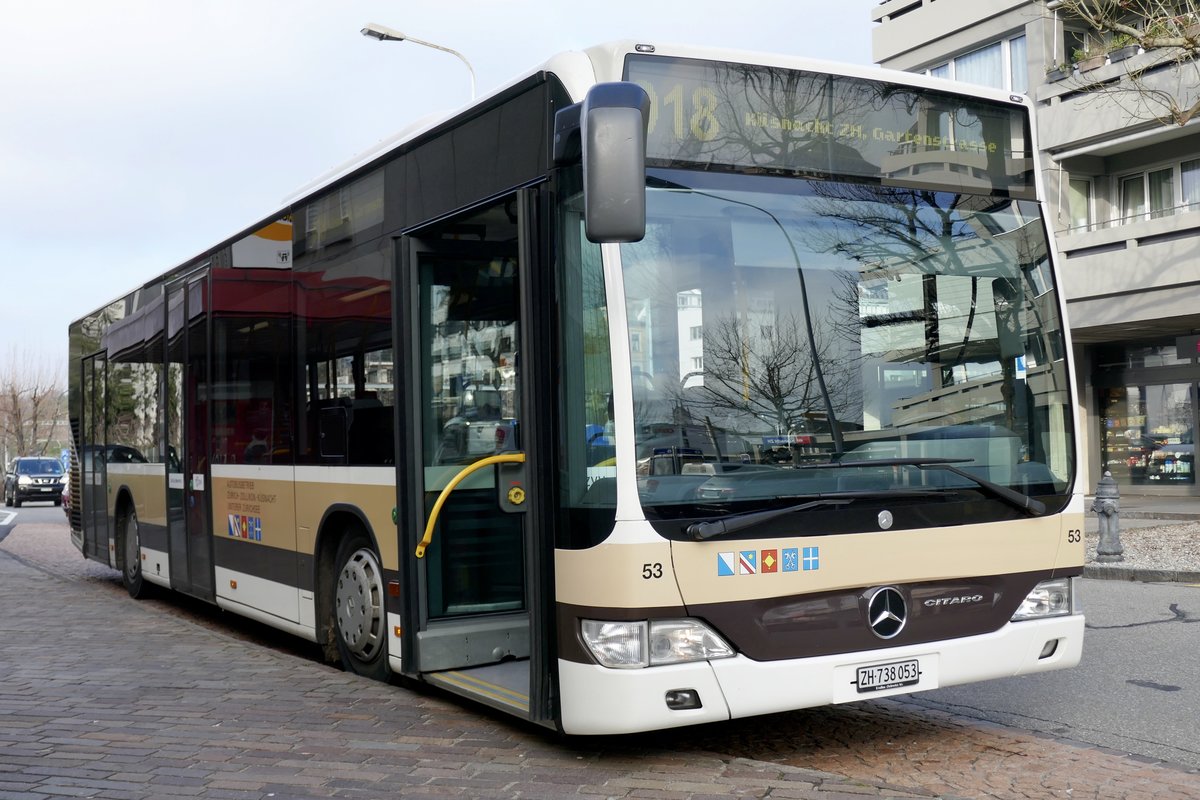 Der Citaro Facelift Nr. 53 des AZZK beim Bahnhof Küsnacht ZH am warten.