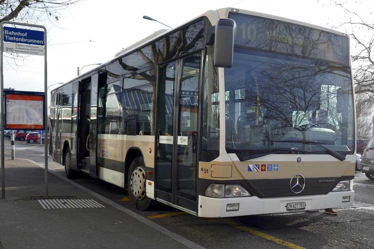 AZZK Citaro I Nr. 51 am 30.12.19 beim Bahnhof Tiefenbrunnen am warten.