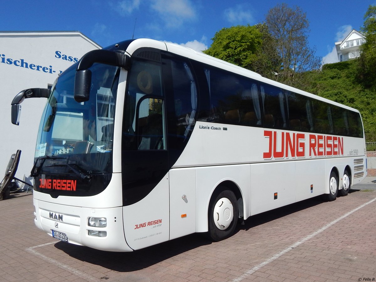 MAN Lion's Coach von Jung Reisen aus Deutschland im Stadthafen Sassnitz am 14.05.2015