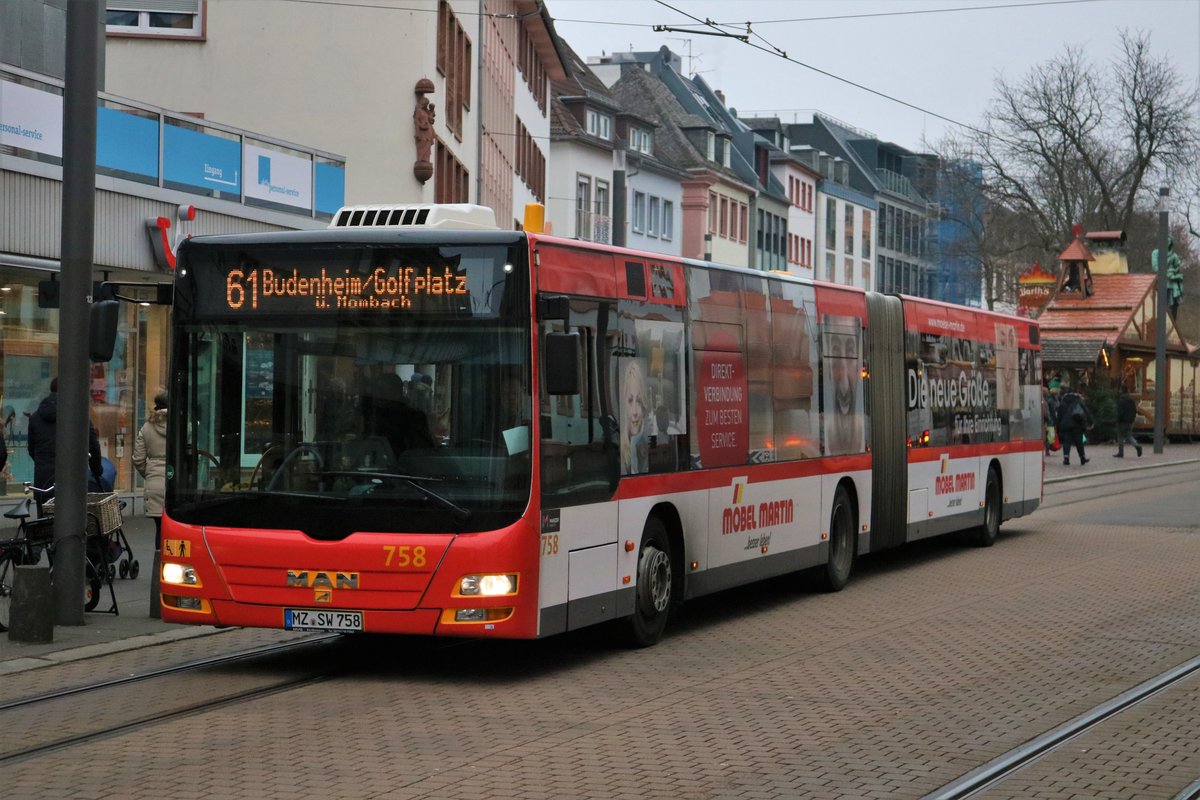 MVG MAN Lions City Wagen 758 am 28.12.18 in Mainz Schillerplatz