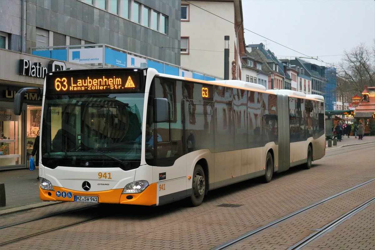 Neuer MVG Mercedes Benz Citaro 2 G Wagen 941 am 28.12.18 in Mainz Schillerplatz