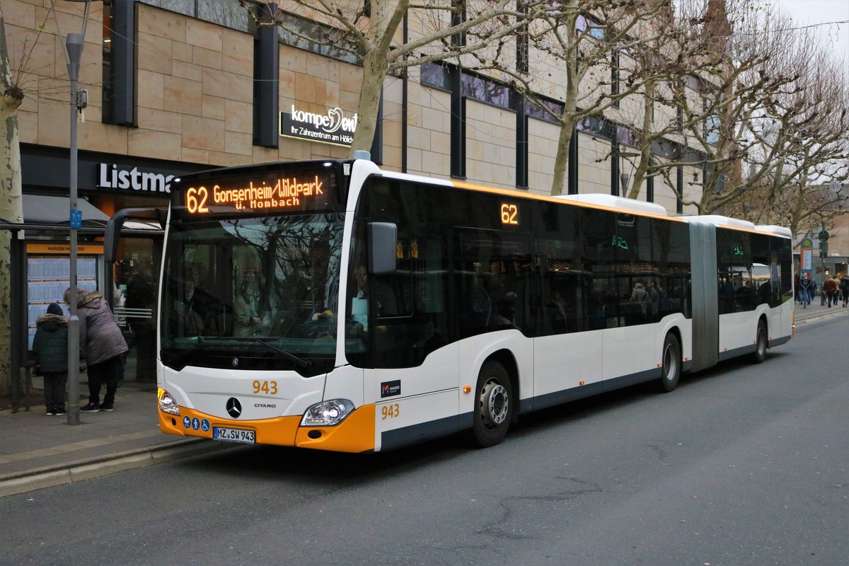 Neuer MVG Mercedes Benz Citaro 2 G Wagen 943 am 28.12.18 in Mainz Höfchen