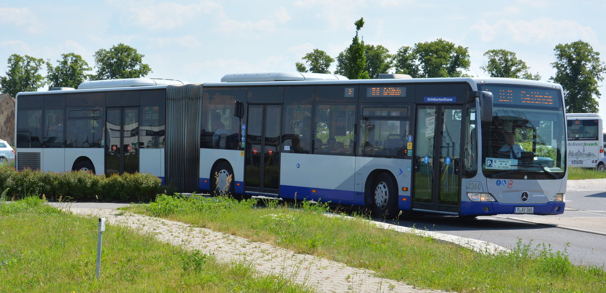 Am 04.06.2016 fährt P-AV 360 auf der ILA-Shuttle Linie P3 zwischen dem ILA-Gelände und Parkplatz P3. Aufgenommen wurde ein Mercedes Benz Citaro I Facelift der BVSG (Betriebshof Werder Havel).