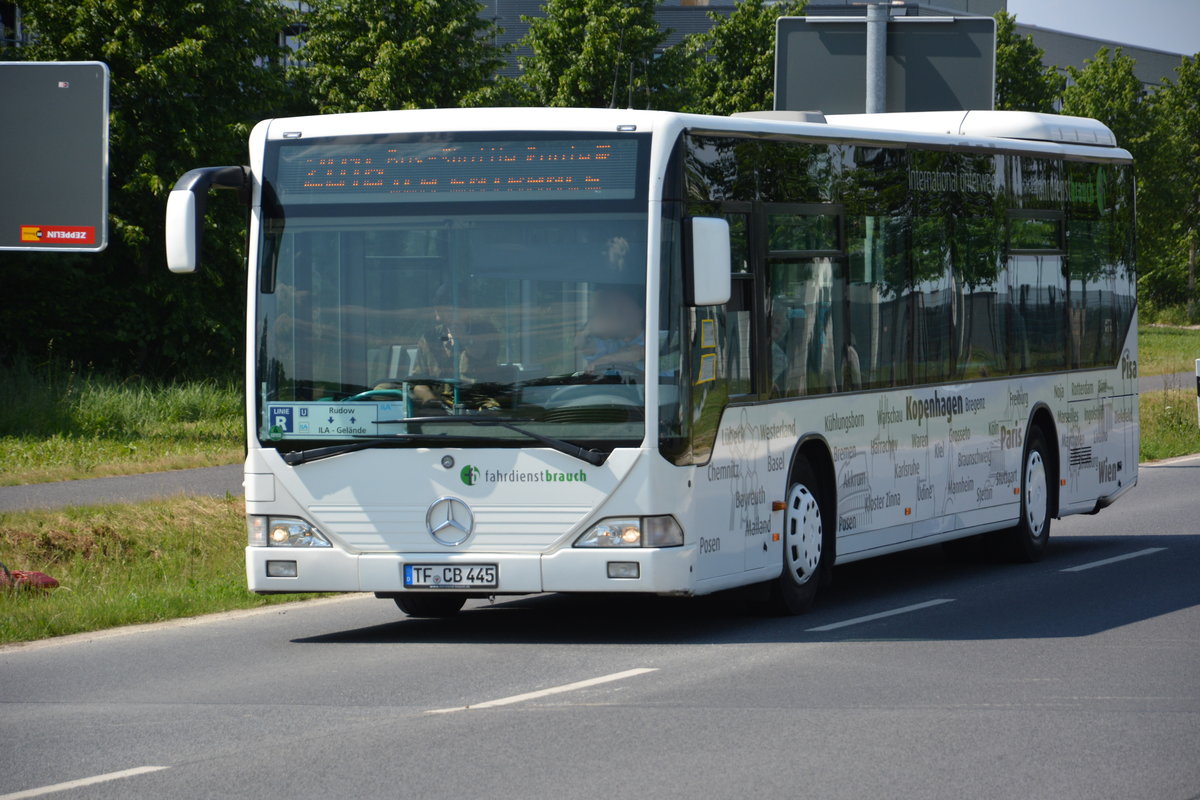 Am 04.06.2016 fährt TF-CB 445 für die ILA 2016 auf der Sonderlinie R zwischen U-Bahnhof Rudow und ILA-Gelände. Aufgenommen wurde ein Mercedes Benz Citaro I.