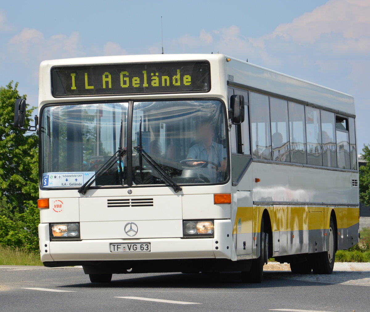 Am 04.06.2016 fährt TF-VG 63 für die ILA 2016 auf der Shuttle Linie "S". Aufgenommen wurde ein Mercedes Benz O405 der VTF.