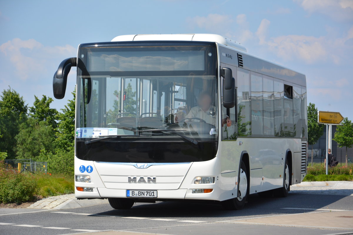 B-BN 701 fährt am 04.06.2016 für die ILA auf der Shuttle-Linie "R". Aufgenommen wurde ein MAN Lion's City Low Entry.