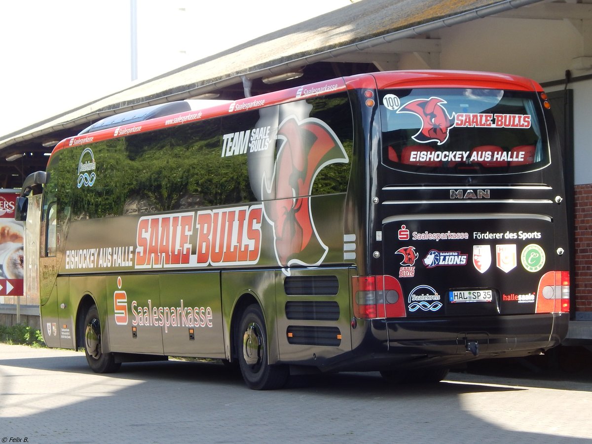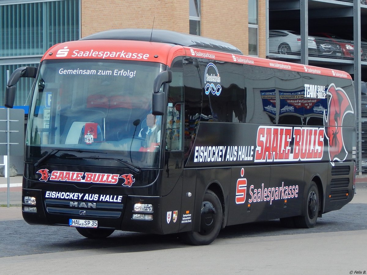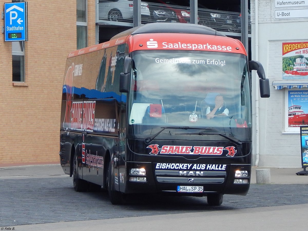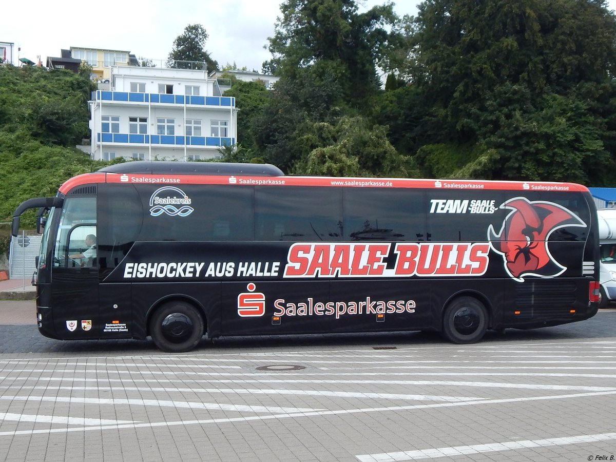 MAN Lion's Coach der Saalesparkasse aus Deutschland im Stadthafen Sassnitz am 02.09.2017