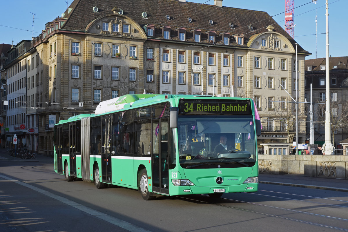 Mercedes Citaro 721, auf der Linie 34, überquert die Mittlere Rheinbrücke. Die Aufnahme stammt vom 26.02.2019.