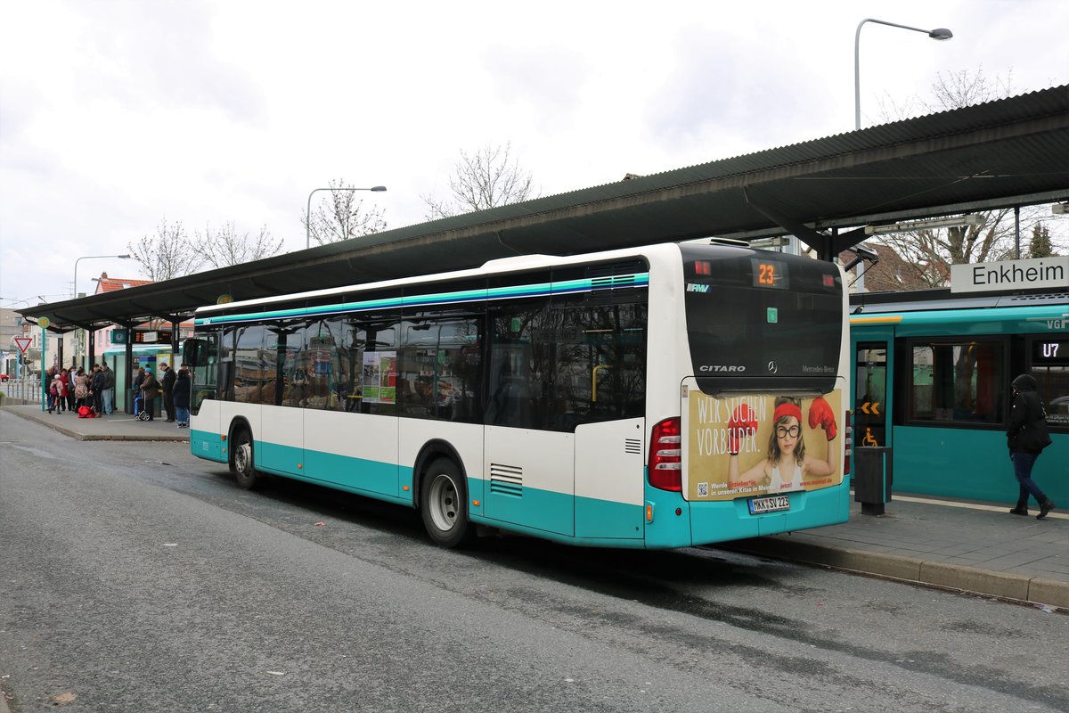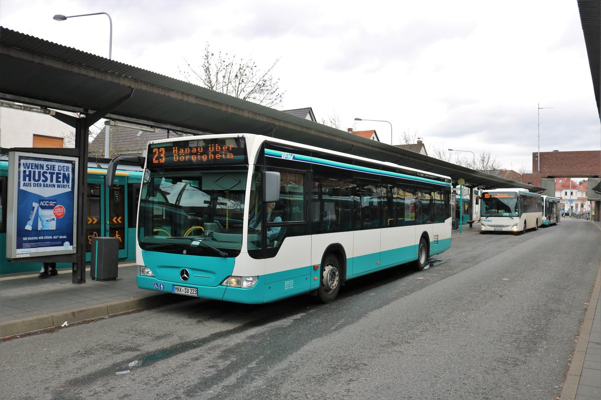 Stadtverkehr Maintal Mercedes Benz Citaro 1 Facelift Wagen 223 am 09.03.19 in Frankfurt am Main Enkheim