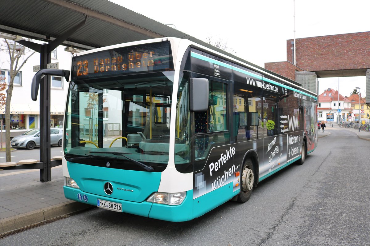 Stadtverkehr Maintal Mercedes Benz Citaro 1 Facelift Wagen 216 am 09.03.19 in Frankfurt am Main Enkheim