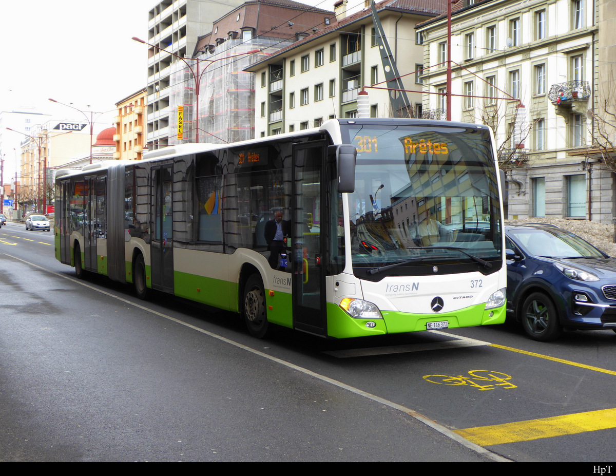 TransN / La Chaux de Fonds - Mercedes Citaro Nr.372 NE 146372 unterwegs in La Chaux de Fonds am 02.03.2019