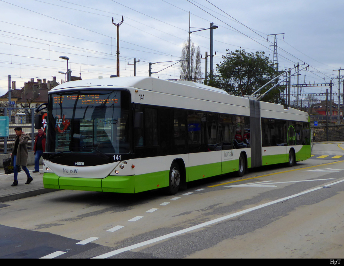 TransN / Neuenburg - Hess Trolleybus Nr.141 bei der Haltestelle Gare Nord beim Bahnhof Neuenburg am 02.03.2019
