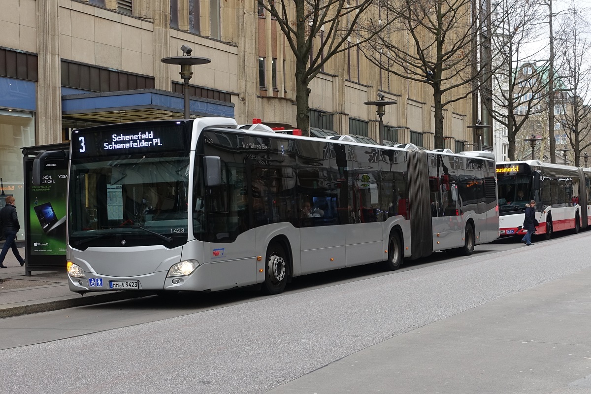 VHH 1423 (HH-V 9423), am 1.3.2019, Hamburg, Mönckebergstr. Linie 3 nach Schenefelder Platz, EvoBus Citaro G C2, 3-türig, EZ 2014