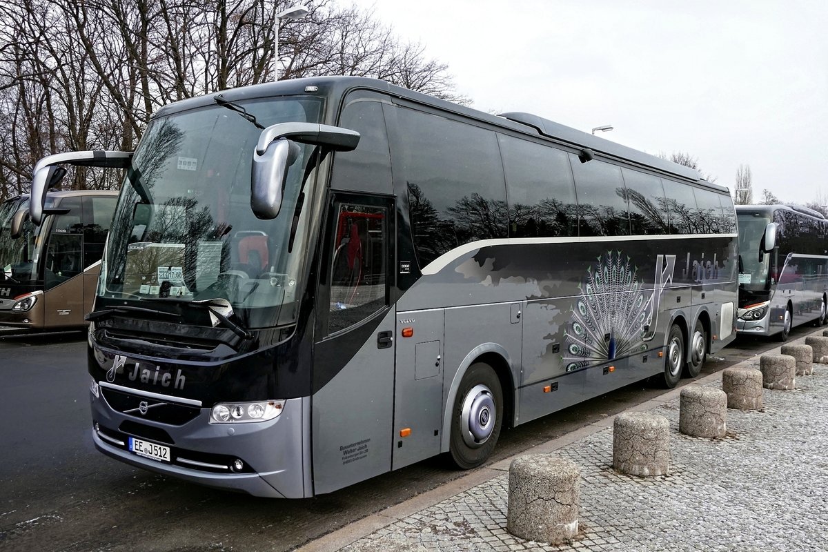 Volvo 9900 vom Busunternehmen ''Walter Jaich'', in Berlin /Olympischer Platz im Januar 2019. (Grüne Woche, Messe)