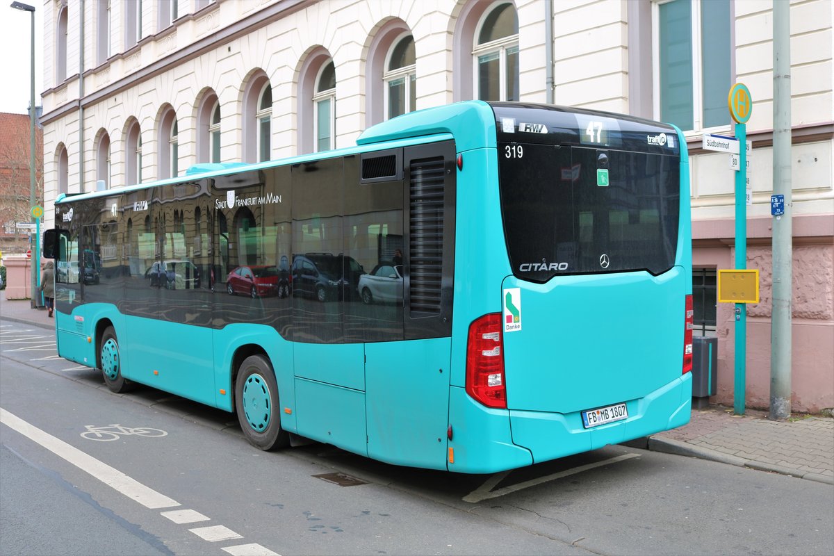 MainBus Mercedes Benz Citaro K Wagen 319 am 09.03.19 in Frankfurt am Main Südbahnhof
