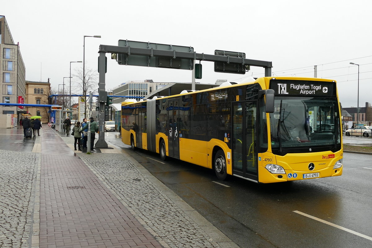Mercedes -Benz Citaro C2 G der BVG, Wg. 4793, Richtung Flughafen Tegel, in Berlin /Hauptbahnhof im März 2019.