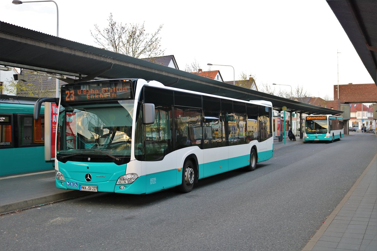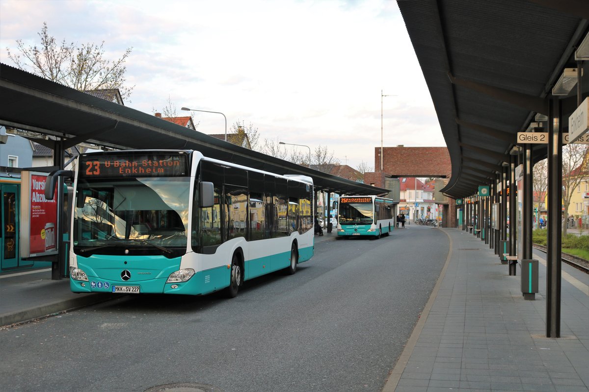 Stadtverkehr Maintal Generationen Treffen am 30.03.19 in Frankfurt Enkheim. Mercedes Benz Citaro 2 trifft auf seinen Vorgänger ein Mercedes Benz Citaro 1 Facelift