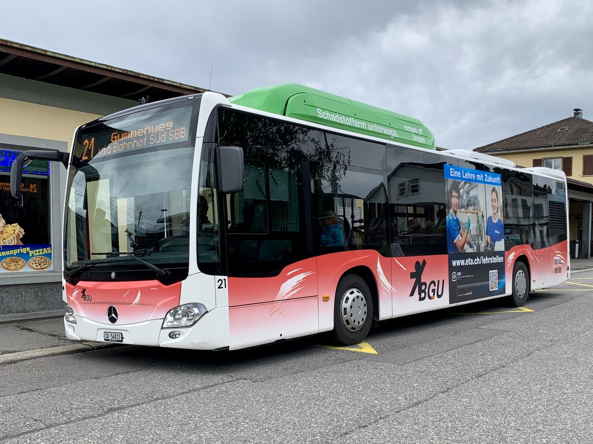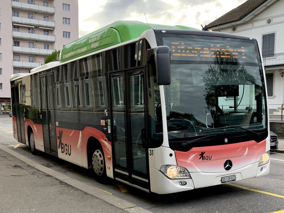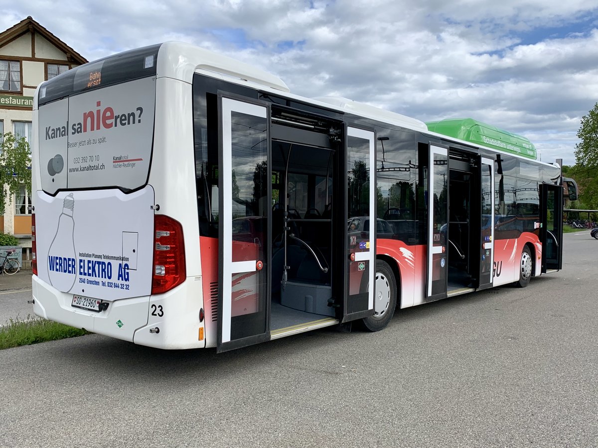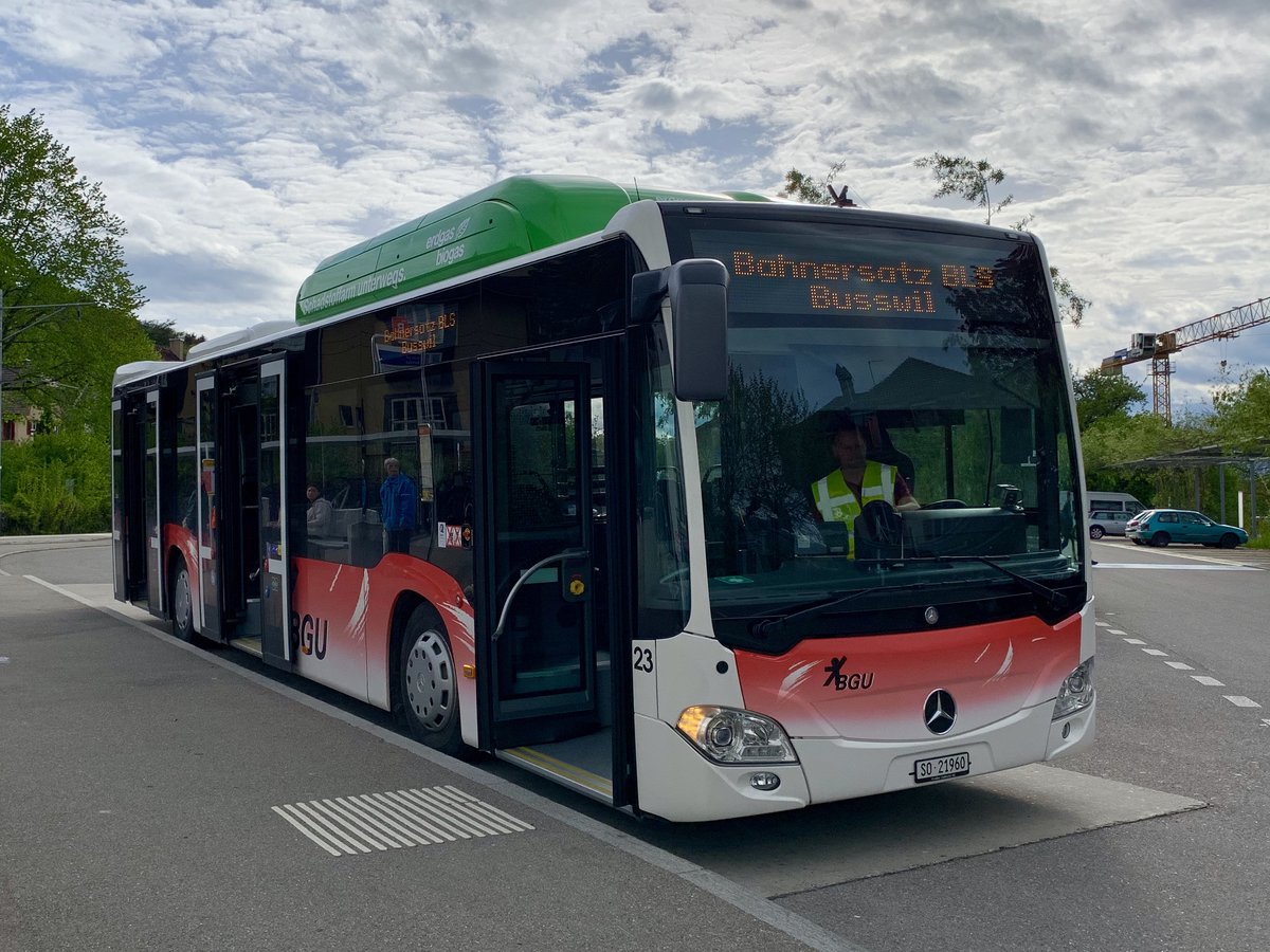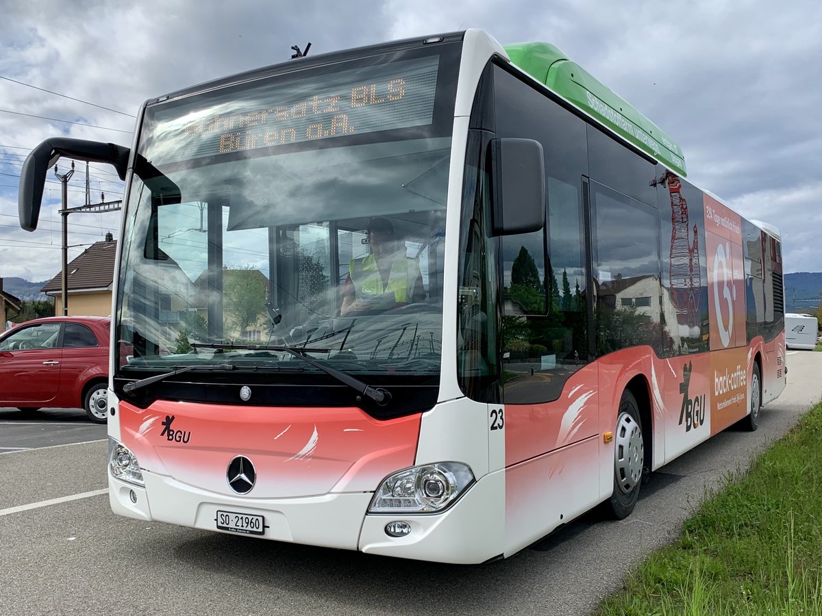 BGU - Gas Mercedes Citaro Nr.23 SO 21960 beim Bahnhof Büren an der Aare als Bahnersatz für die BLS Linie Büren an der Aare -Busswil am 10.05.2019