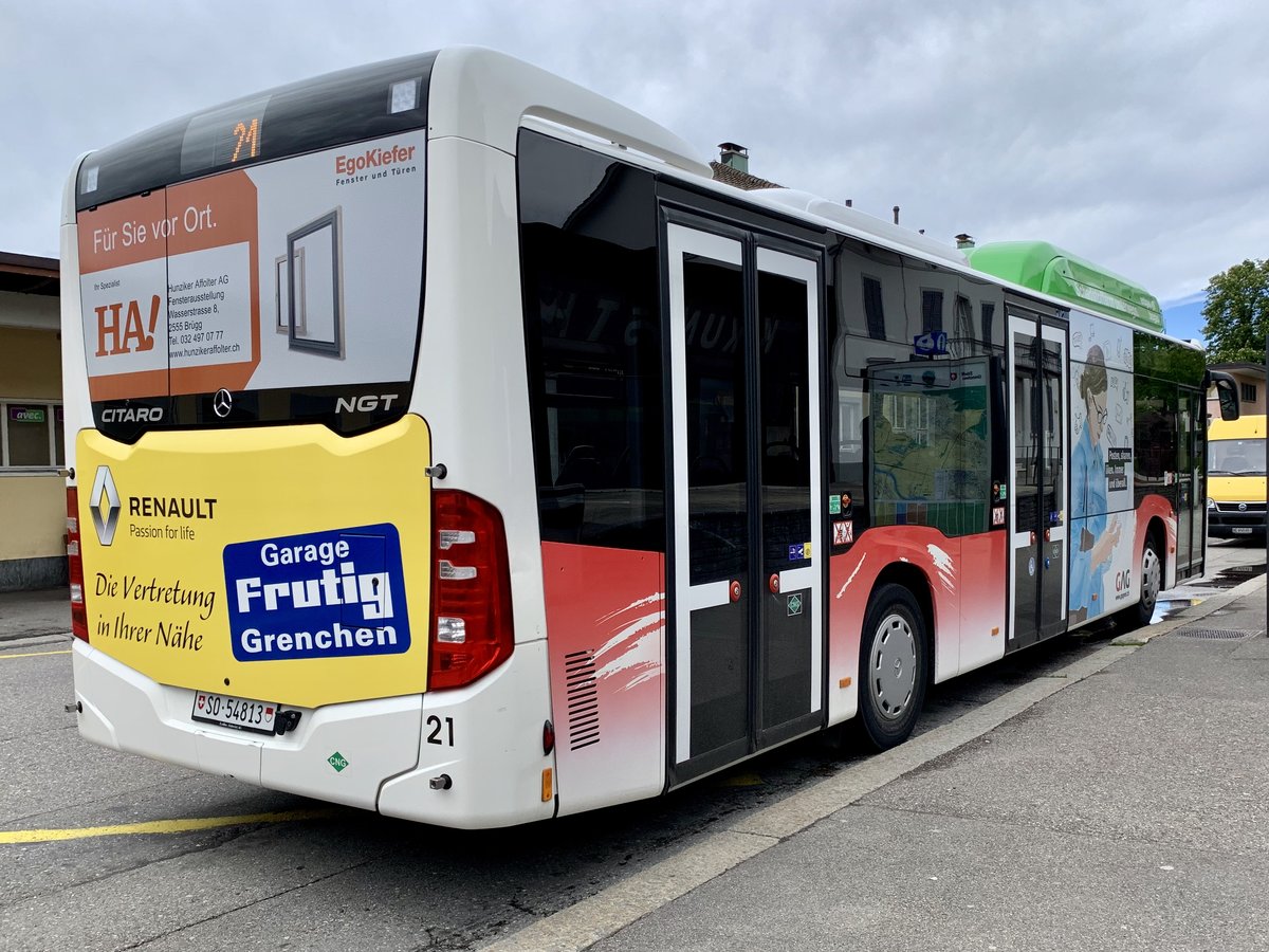 BGU MB C2 NGT Nr. 16 mit Erdgas Werbung am 10.5.19 beim Bhf Grenchen Süd.
