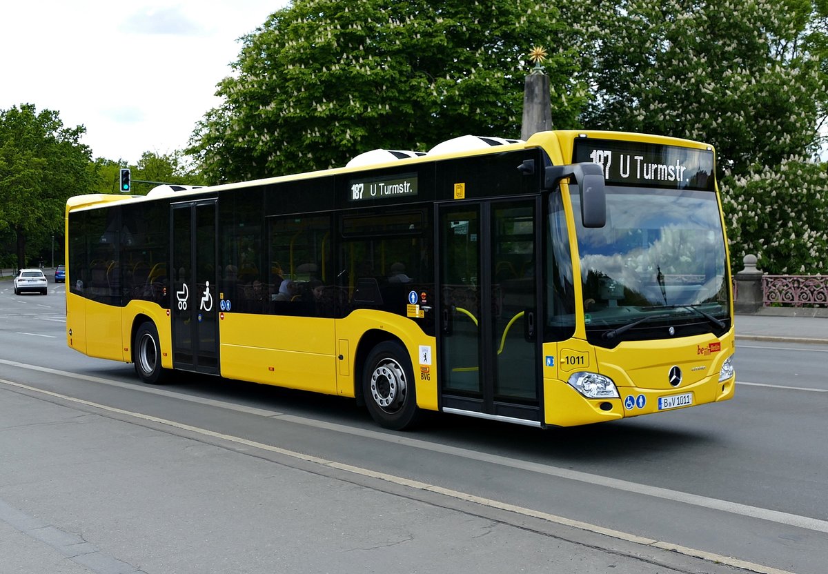 Mercedes- Benz Citaro C2 der BVG, Wagen '1001', als Linie 187, hier auf dem Spreeweg /Lutherbrücke, Berlin im Mai 2019.