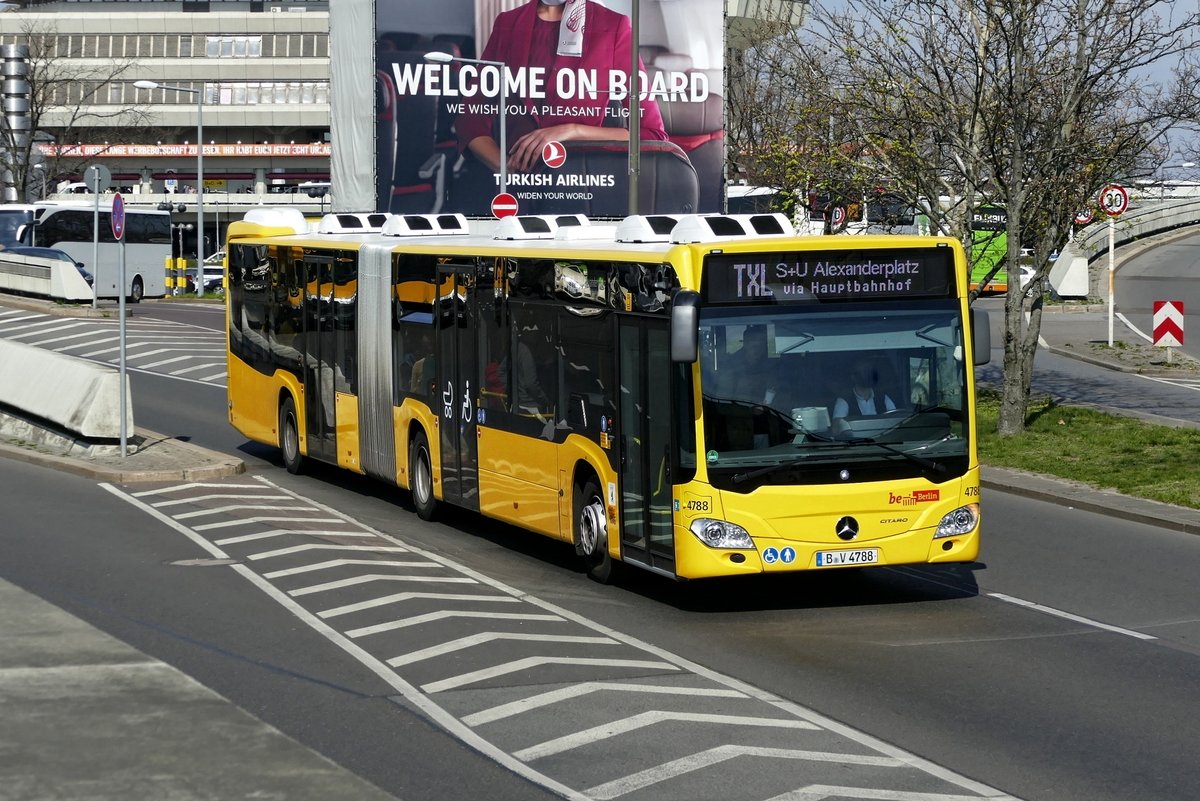 Mercedes- Benz Citaro C2 Gl. der BVG, Wagen '4788', hier bei der Ausfahrt vom Flgh. Berlin- Tegel Richtung S + U Alexanderplatz im April 2019.