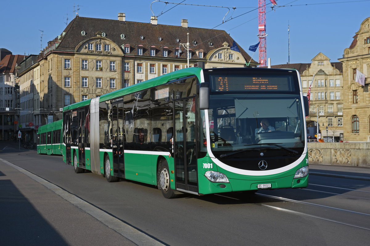 Mercedes Citaro 7001, auf der Linie 31, überquert die Mittlere Rheinbrücke. Die Aufnahme stammt vom 29.03.2019.