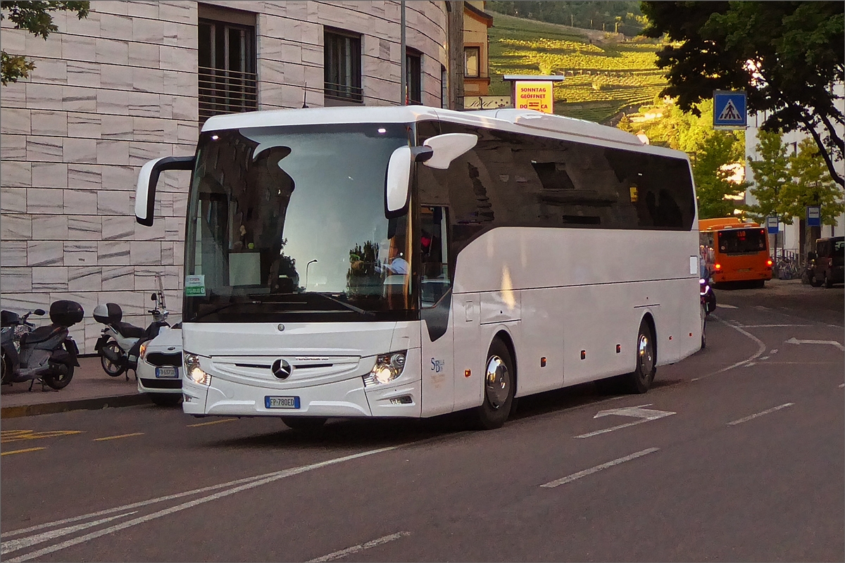 Mercedes Benz Tourismo von Dibiasi im Liniendienst für die SAD in Sèdtirol unterwegs, aufgenommen in Bozen. Mai 2019