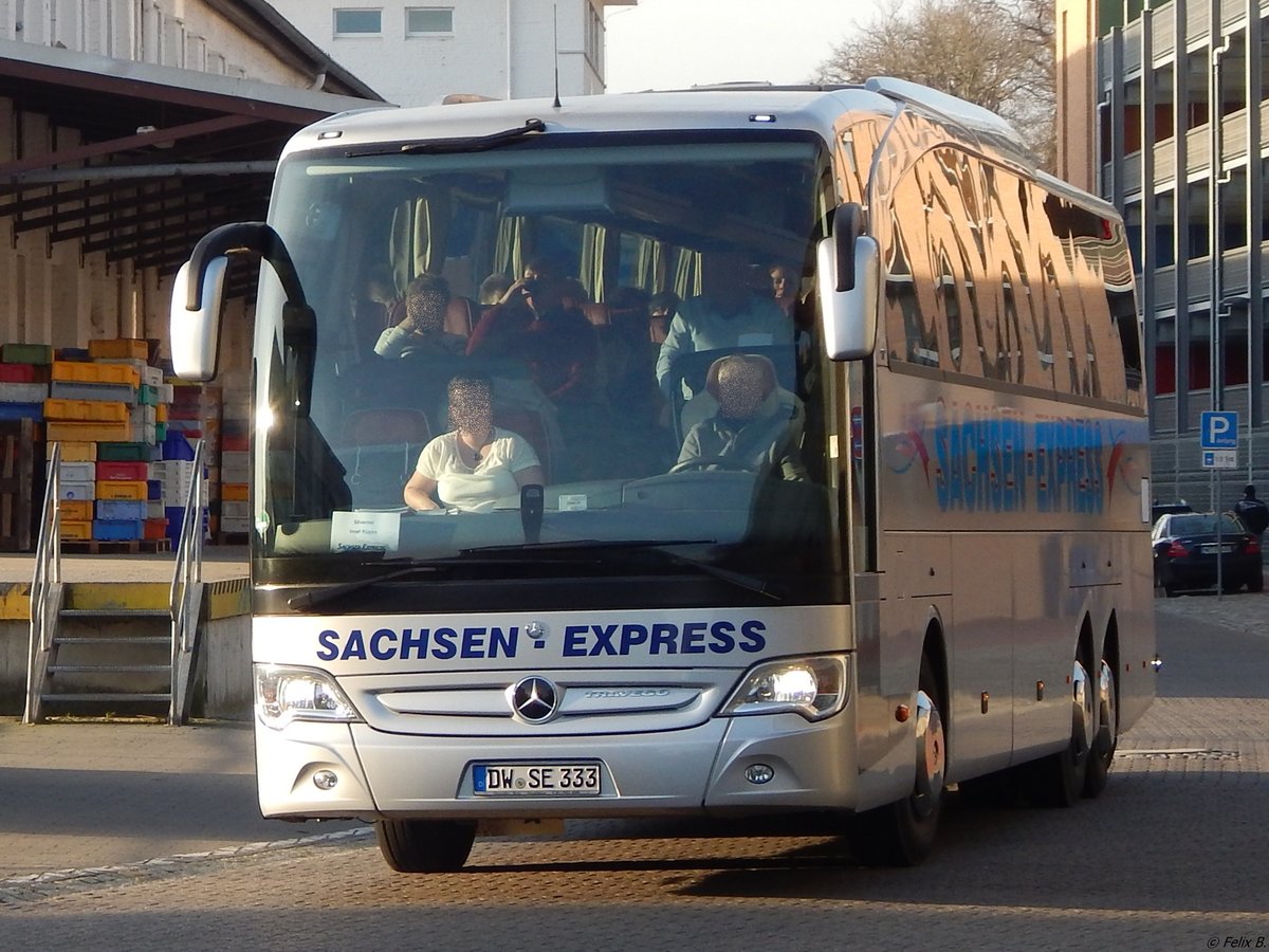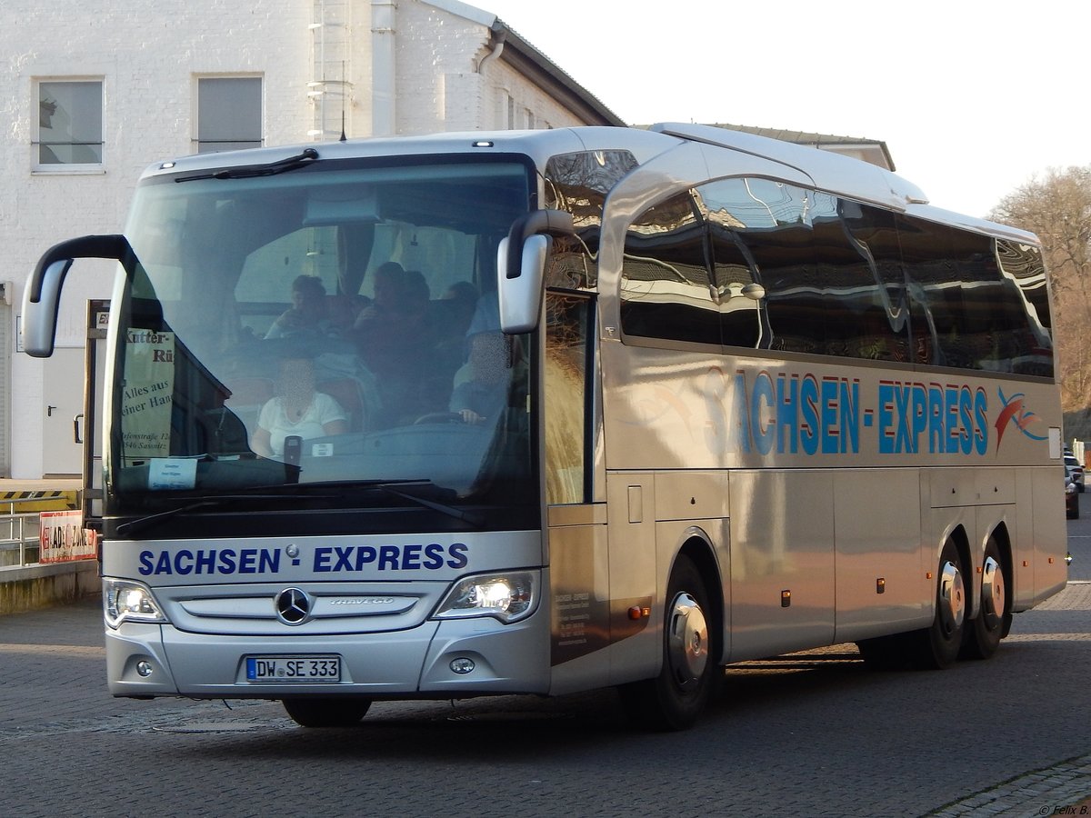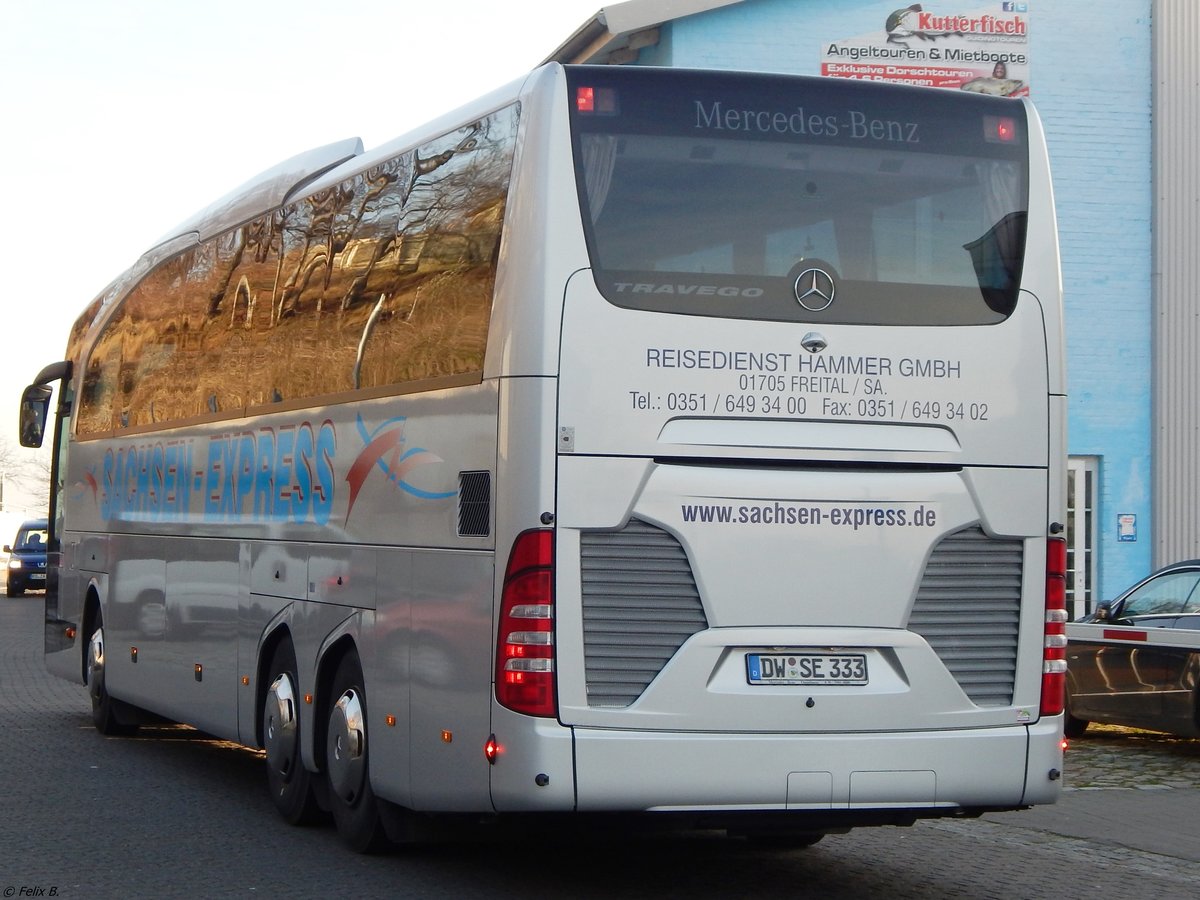 Mercedes Travego von Sachsen-Express/Hammer aus Deutschland im Stadthafen Sassnitz am 31.12.2015