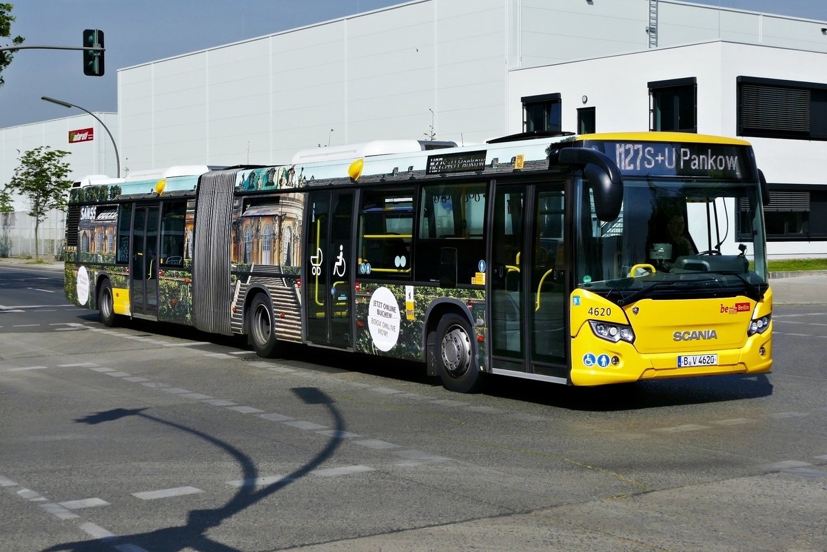 Scania Citywide der BVG, Wagen 4620 ''Sanssouci'', hier in Berlin- Charlottenburg im April 2019.