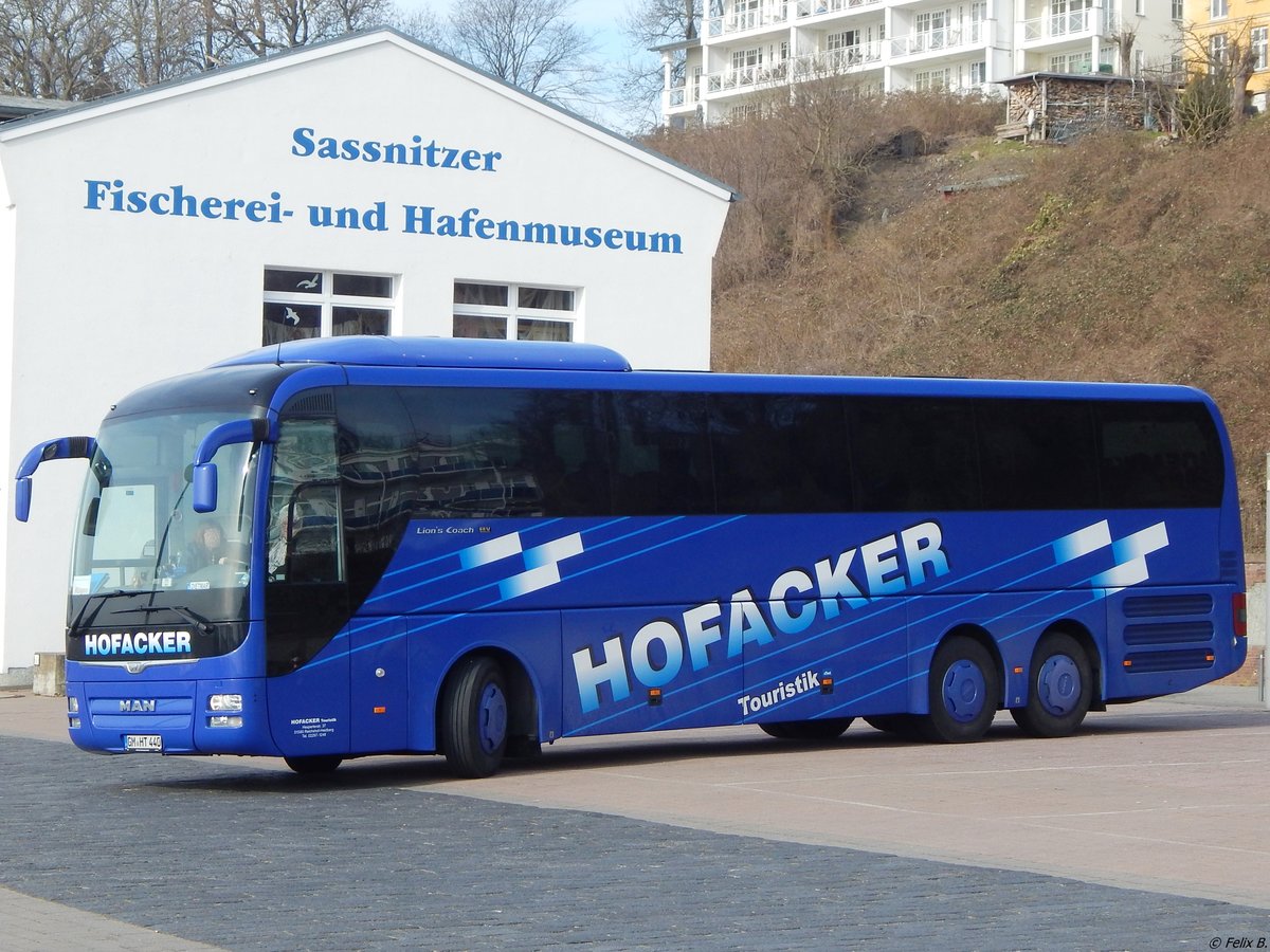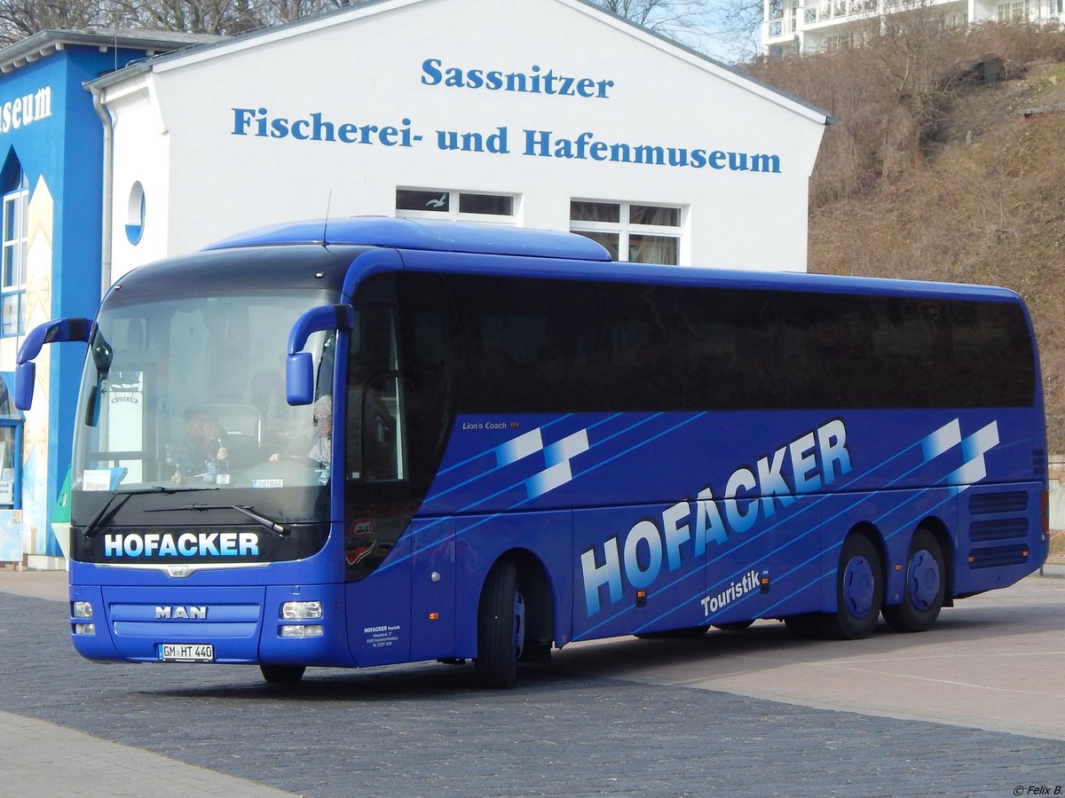 MAN Lion's Coach von Hofacker aus Deutschland im Stadthafen Sassnitz am 27.03.2016