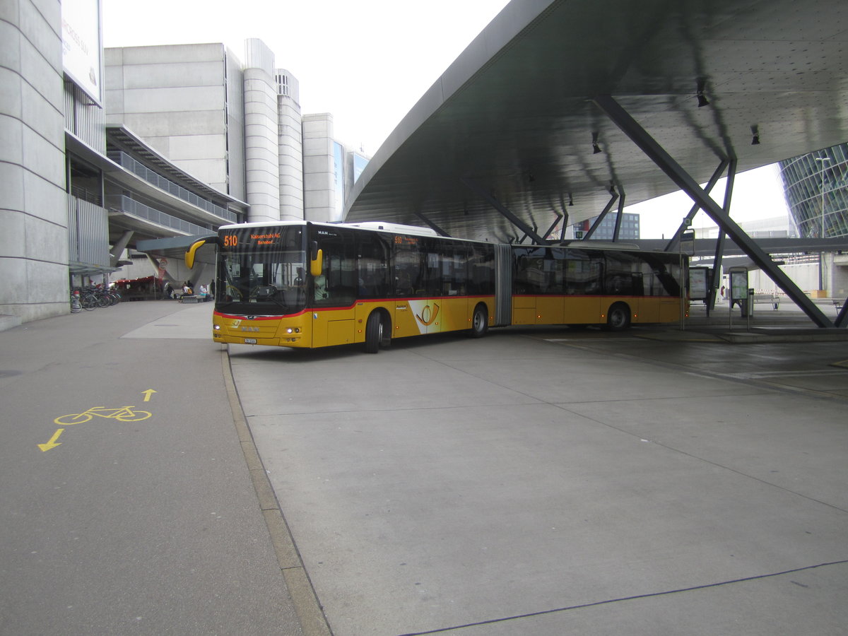 Postauto/PU ABSN Nr. 357 (MAN A23 Lion's City G) am 18.5.2019 beim Flughafen Zürich