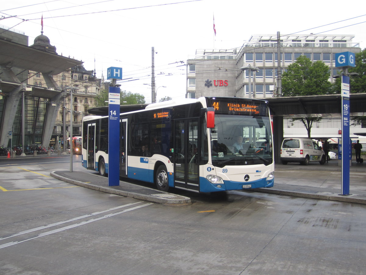 vbl Nr. 89 (Mercedes Citaro C2 O530) am 22.5.2019 beim Bhf. Luzern