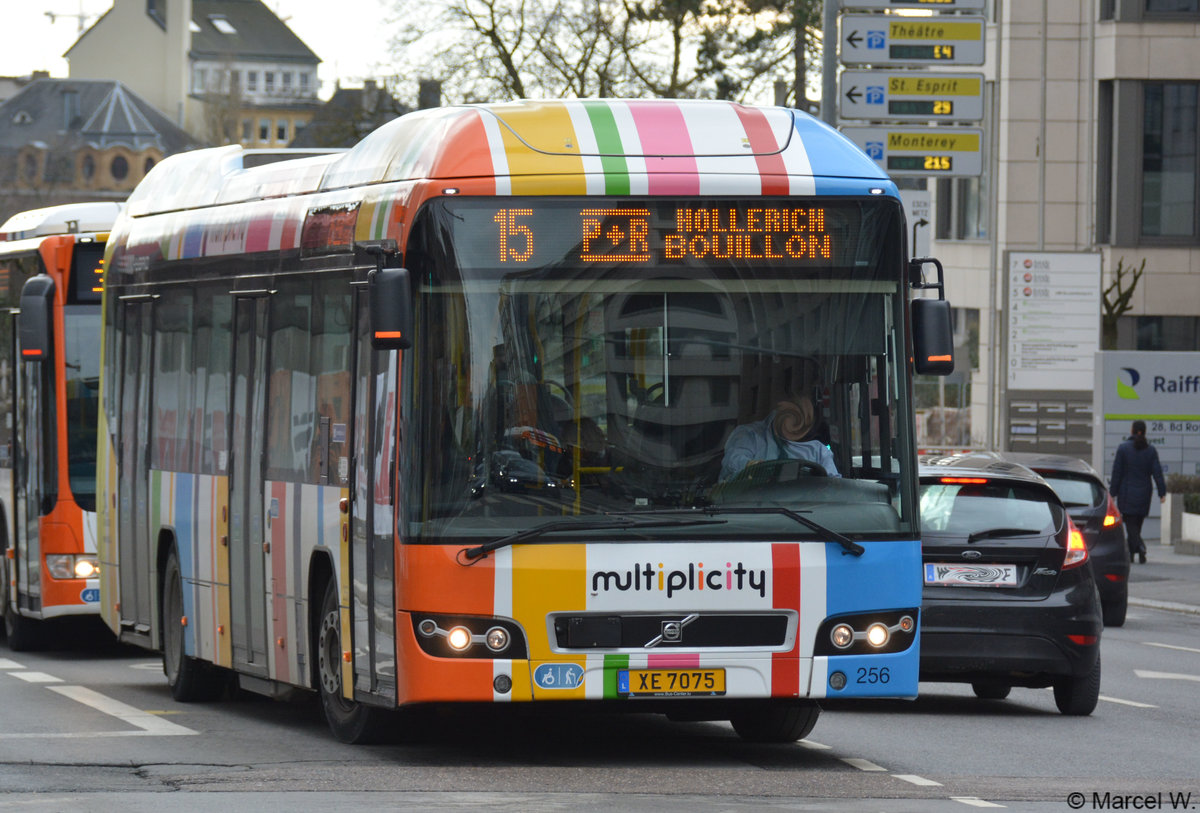 XE 7075 fährt am 03.02.2019 auf der Linie 15 durch Luxemburg Stadt. Aufgenommen wurde ein Volvo 7700.