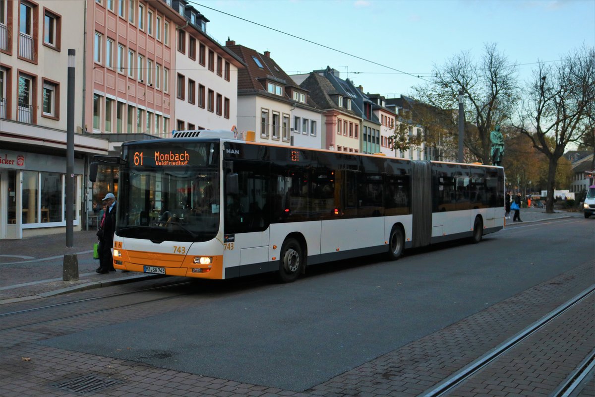 Mainzer Mobilität MAN Lions City G Wagen 743 am 09.11.19 in Mainz