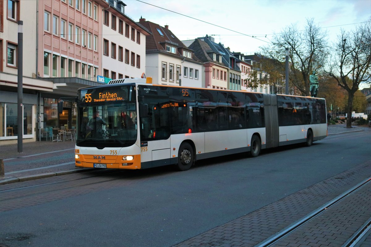 Mainzer Mobilität MAN Lions City G Wagen 755 am 09.11.19 in Mainz