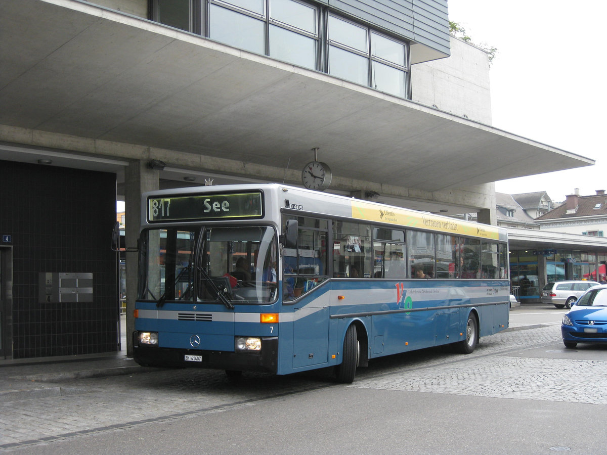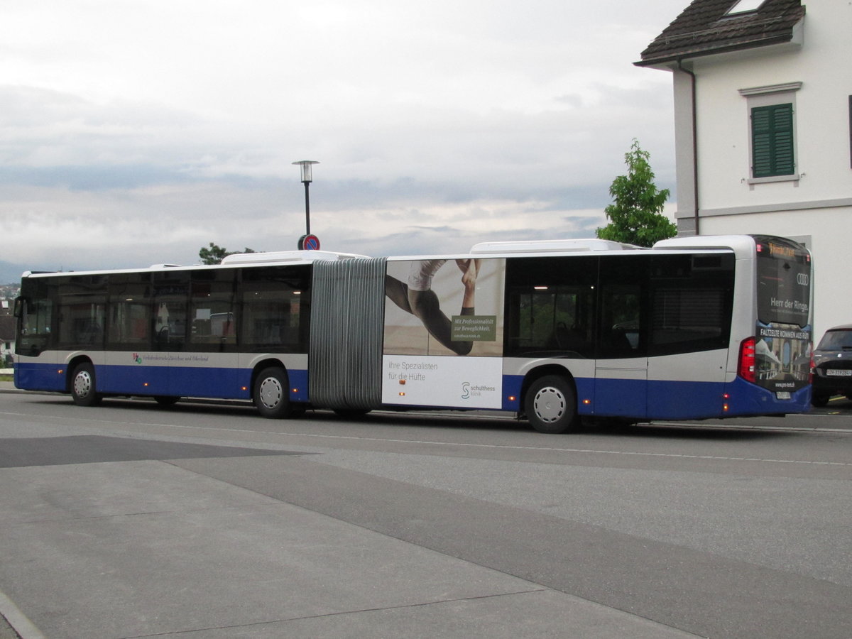 VZO - Mercedes Citaro Nr. 106 an der Ersatzhaltestelle am Bahnhof Feldbach am 4.8.20. Nach seinem heftigen Unfall im Sommer 2018 in Grüningen bekam der Wagen Nr. 106 an der Front eine neue orange Linienanzeige.