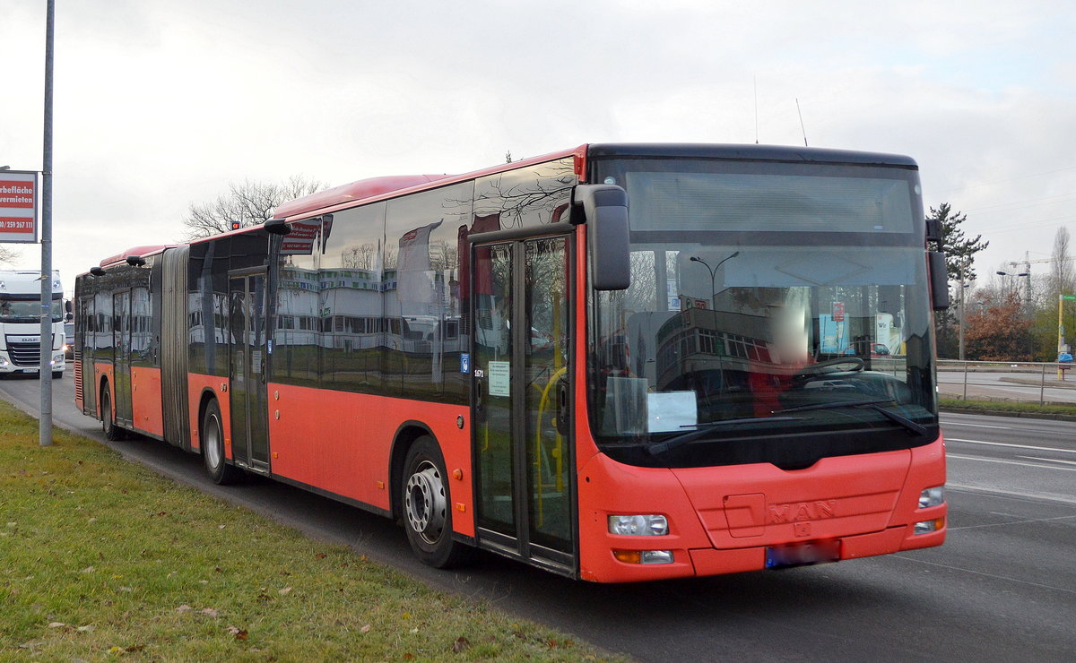 Ein MAN Gelenkbus mit Hamburger Kennzeichen? (Nr.1671) in rot am 16.12.20 Schönefeld b. Berlin.