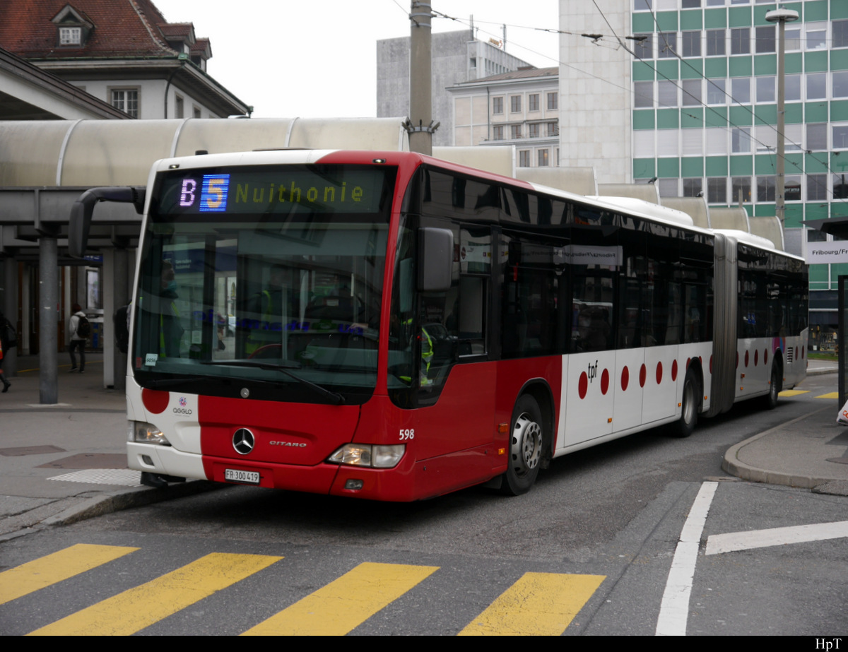 tpf - Mercedes Citaro Nr.598 FR 300419 unterwegs auf der Linie 5 in der Stadt Freiburg am 19.12.2020