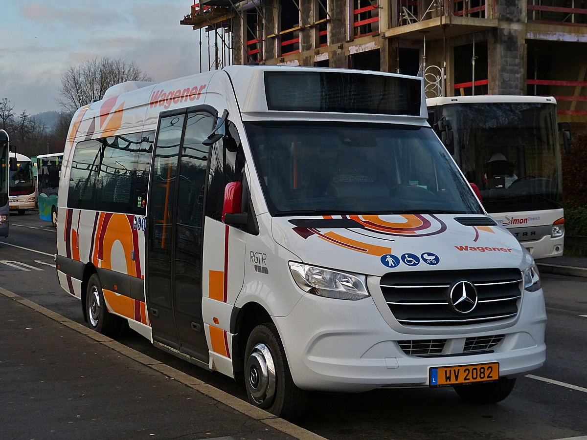 WV 2082, Mercedes Benz Sprinter von Voyages Wagener in neuer Farbgebung, gesehen am Bahnhof in Ettelbrück. 18.12.2020