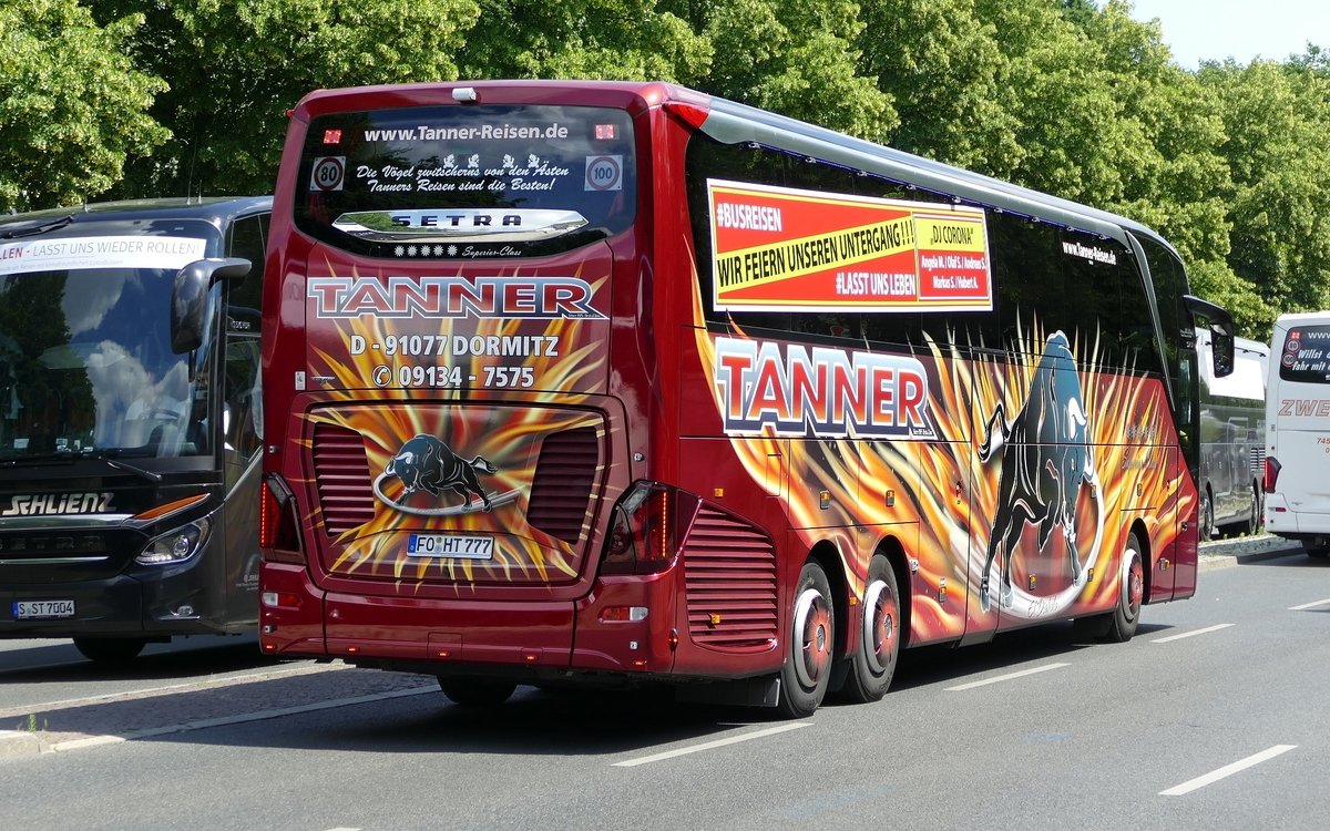 Setra S 517 HDH, ''El Diabolo'' von Tanner KG, Omnibusvermietung & Reisebüro. Berlin im Juni 2020 (Busdemo).