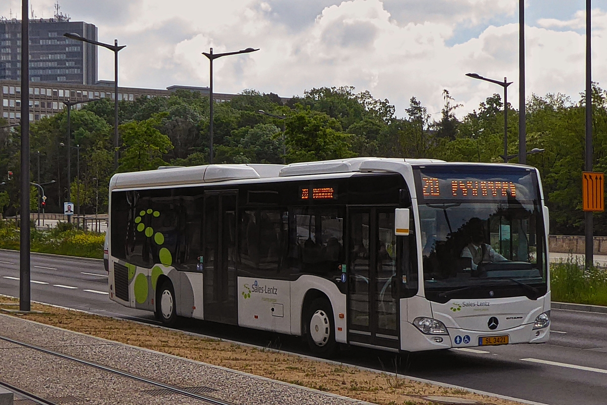 SL 3325, Mercedes Benz Integro von Sales Lentz, als SEV auf der Strecke Diekirch – Bahnhof Luxemburg unterwegs. Stadt Luxemburg am 07.03.2020